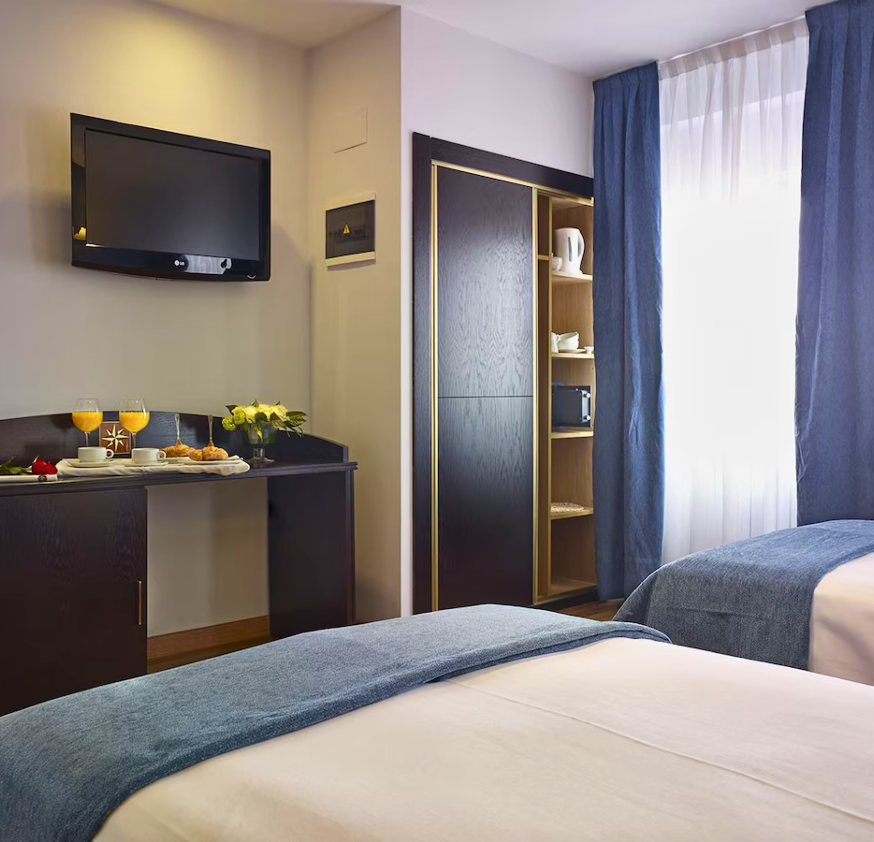 - Habitaciones dobles, suite junior, familiares y triples.