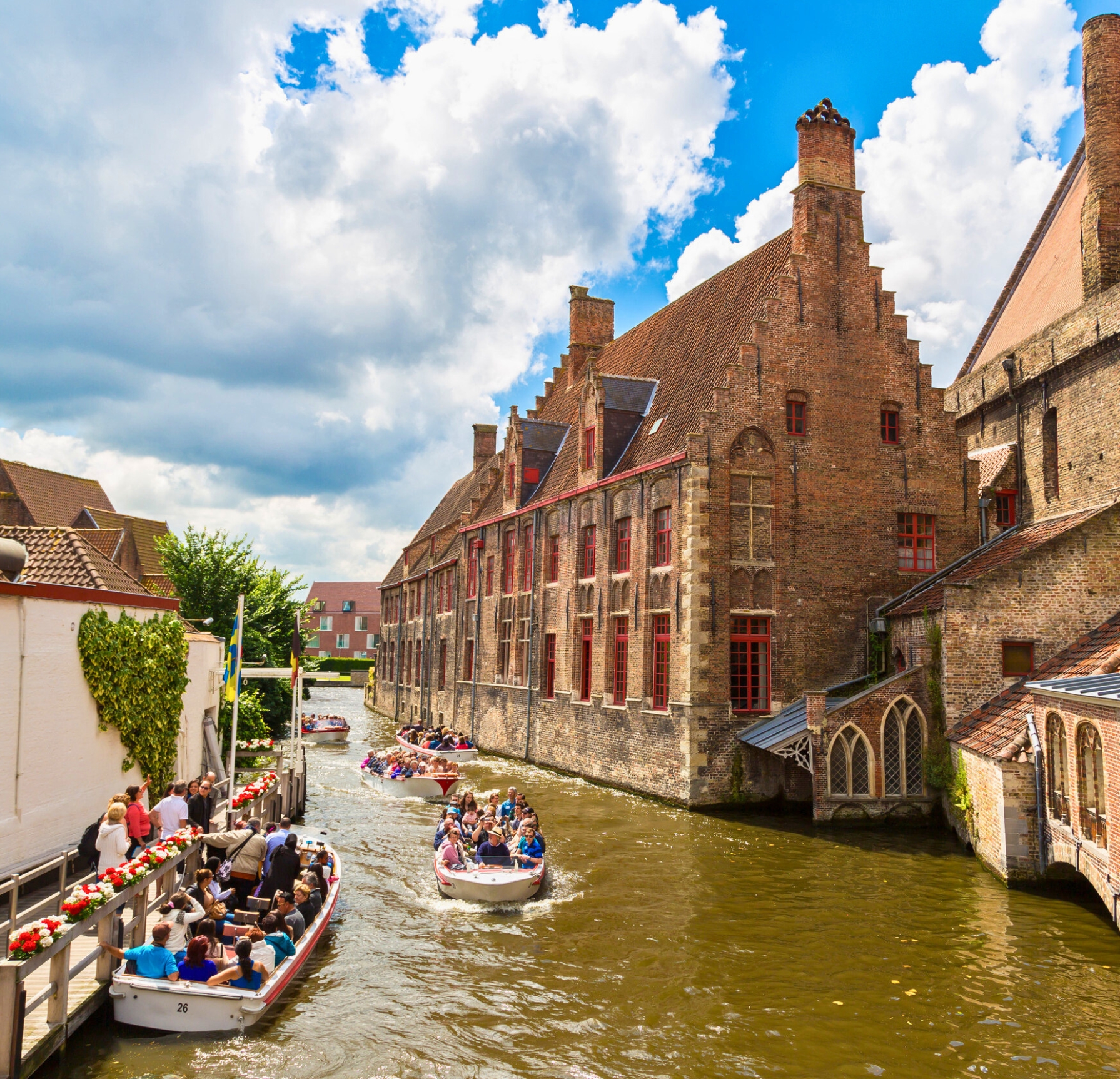 Brujas, apodada la "Venecia del Norte", es una de las ciudades medievales mejor conservadas de Europa, un destino de ensueño que transporta al visitante a un auténtico cuento de hadas: su centro histórico (Patrimonio Mundial de la UNESCO) está atravesado por pintorescos canales bordeados de casas gremiales, mientras que plazas icónicas como el Markt y el Burg, y monumentos como la torre Belfort, invitan a perderse en sus callejones adoquinados, disfrutando de su ambiente romántico, su exquisito chocolate belga y su famosa cerveza artesanal.