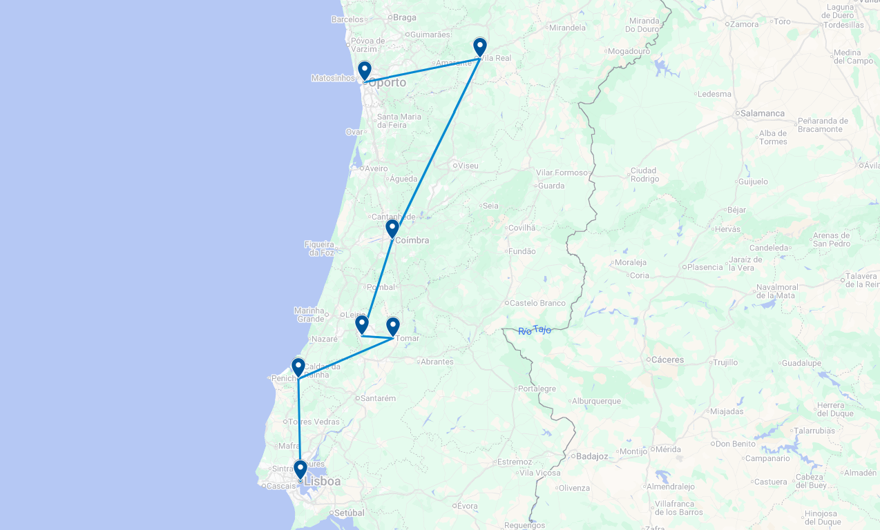El viaje sigue hacia Fátima, uno de los principales centros de peregrinación del mundo, para continuar hacia Tomar, donde visitarás el Castillo y Convento de Cristo, legado de los templarios, y la encantadora villa medieval de Óbidos. Finalizarás el circuito en Lisboa, recorriendo sus principales monumentos y barrios históricos antes del regreso. Un viaje ideal para conocer la esencia de Portugal entre patrimonio, cultura y tradición de 7 días y 6 noches.