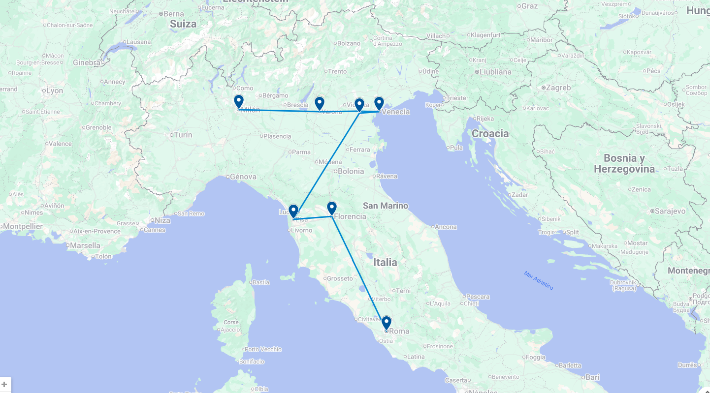 Roma, Florencia, Pisa, Venecia, Milán, Verona, Padua