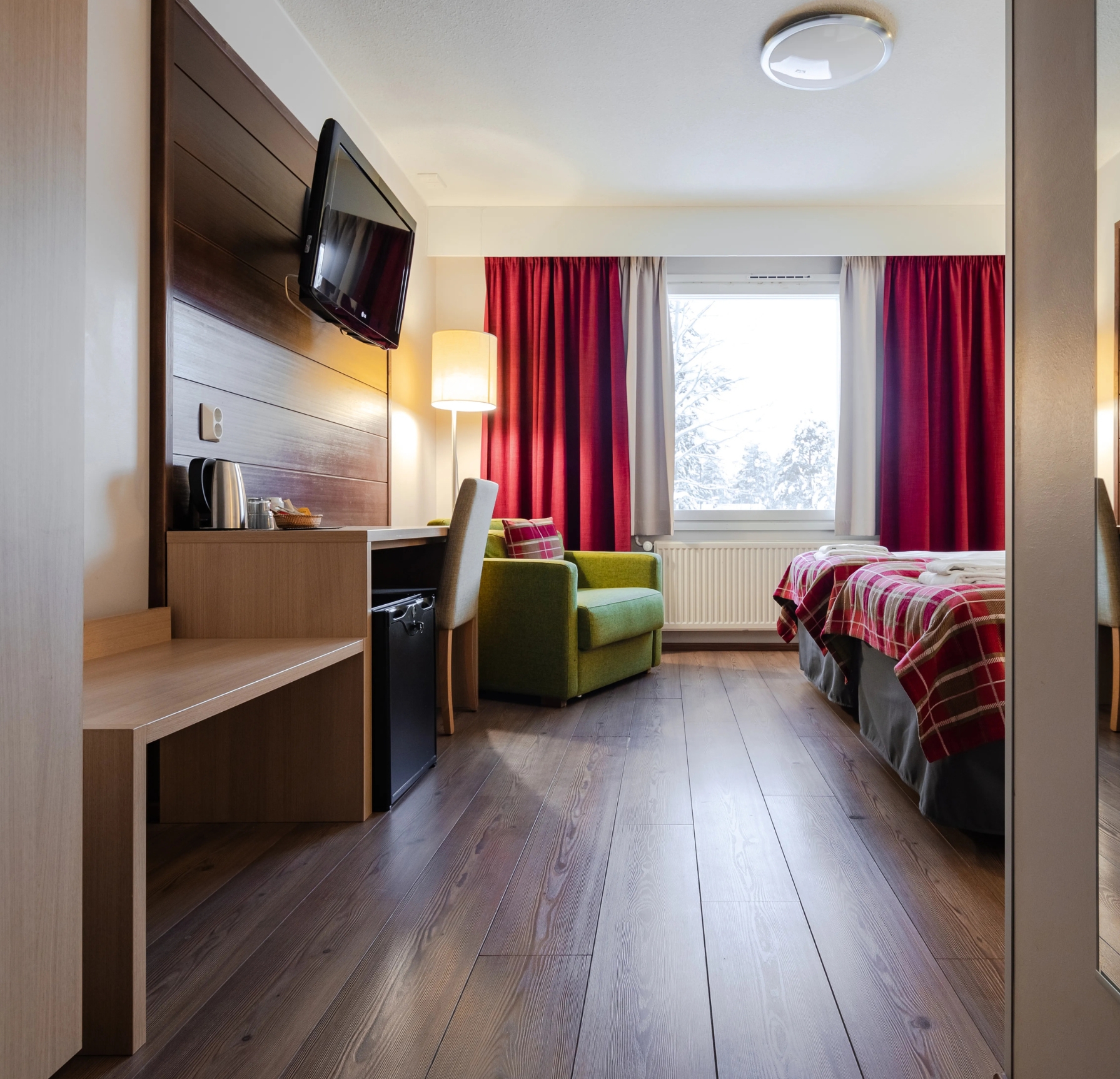 Un alojamiento cálido, funcional y bien ubicado en el corazón de Levi. Todas las habitaciones cuentan con sauna privada y están pensadas para parejas, familias o pequeños grupos.