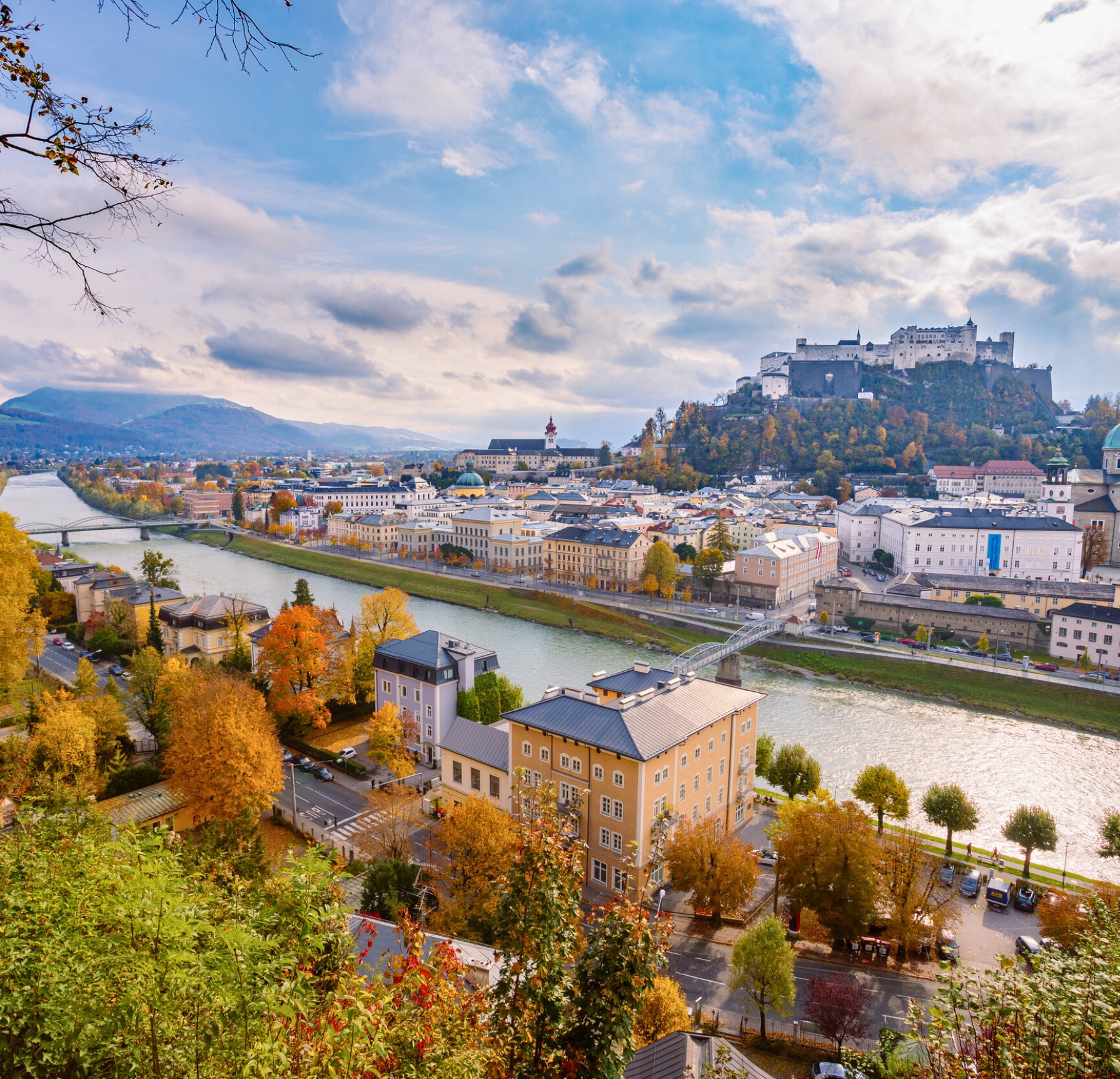 Salzburgo es una ciudad de cuento de hadas, famosa por su impresionante casco antiguo barroco, declarado Patrimonio de la Humanidad por la UNESCO . Ubicada majestuosamente a los pies de los Alpes, es mundialmente conocida como el lugar de nacimiento de Wolfgang Amadeus Mozart y por ser el escenario de la famosa película musical "Sonrisas y Lágrimas" (The Sound of Music). Sus elegantes plazas, la imponente Fortaleza de Hohensalzburg y los románticos Jardines de Mirabell se combinan para ofrecer una experiencia de elegancia alpina y profunda riqueza cultural.